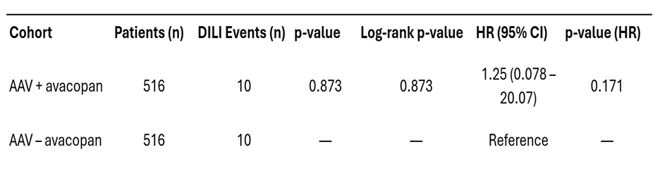 Heydari-Kamjani et al. Risk of DILI with avacopan. Real world study, propensity score matching. Risk DILI 2% with avacopan vs 1.9% PBO @RheumNow #ACR25 Abstr#724 https://t.co/UhVkcXEYjF
