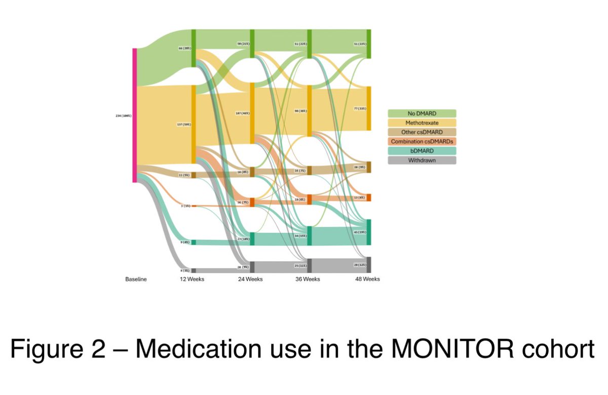 #0191 We found that in a large South London RA cohort, use of advanced therapy in moderate disease (DAS28 3.2-5.1) generally followed NICE guidance. Gaps often reflected telehealth limiting DAS assessment and patient hesitancy. Self-assessment tools may help. @RheumNow #ACR25 https://t.co/UMGtkfABHn