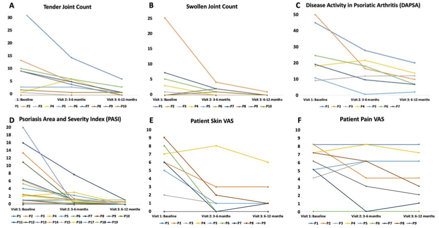 Ribeiro et al. Case series of combination bDMARD/tsDMARD in PsA from Toronto. 24 patients, median just over a year follow-up. Appear effective, especially for objective skin and joint measures. No major safety concerns but short follow-up to date. @RheumNow #ACR25 Abstr#565 https://t.co/Zk3odT2EX2