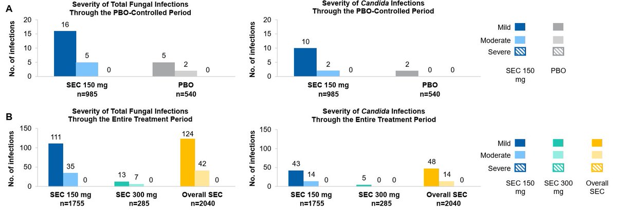 Singla et al. In secukinumab phase 3 trials, fungal (inc candida) infections uncommon. 5.51 for sec vs 3.39 for PBO per 100PY. @RheumNow #ACR25 Abstr#585 https://t.co/g78zUsxD5a