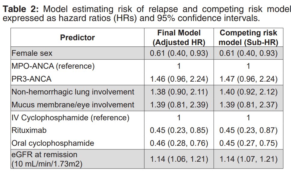 Post-hoc PEXIVAS study, estimating risk of relapse from baseline variables