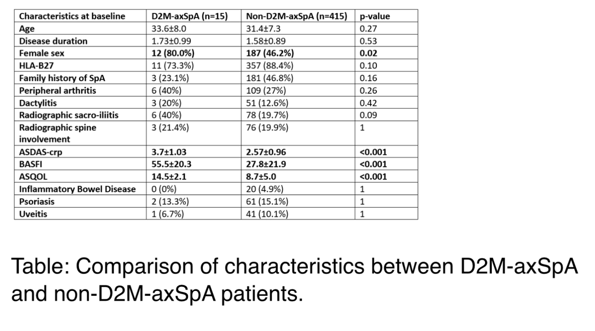 ✳️Factors assoc w/ D2M axSpA - female sex, ⬆️ASDAS-CRP ⬆️BASFI ⬆️ASQOL at baseline.