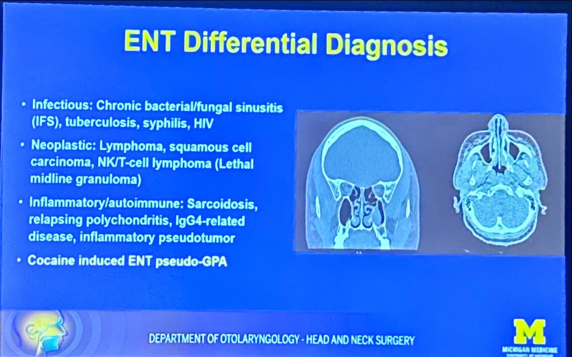 Not all inflammatory nasal lesions are vasculitis! Dr. Zacharek presents from the ENT perspective