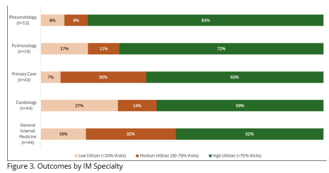 💬 High utilizers (> 70% visits): 83%. The highest among IM subspecialties