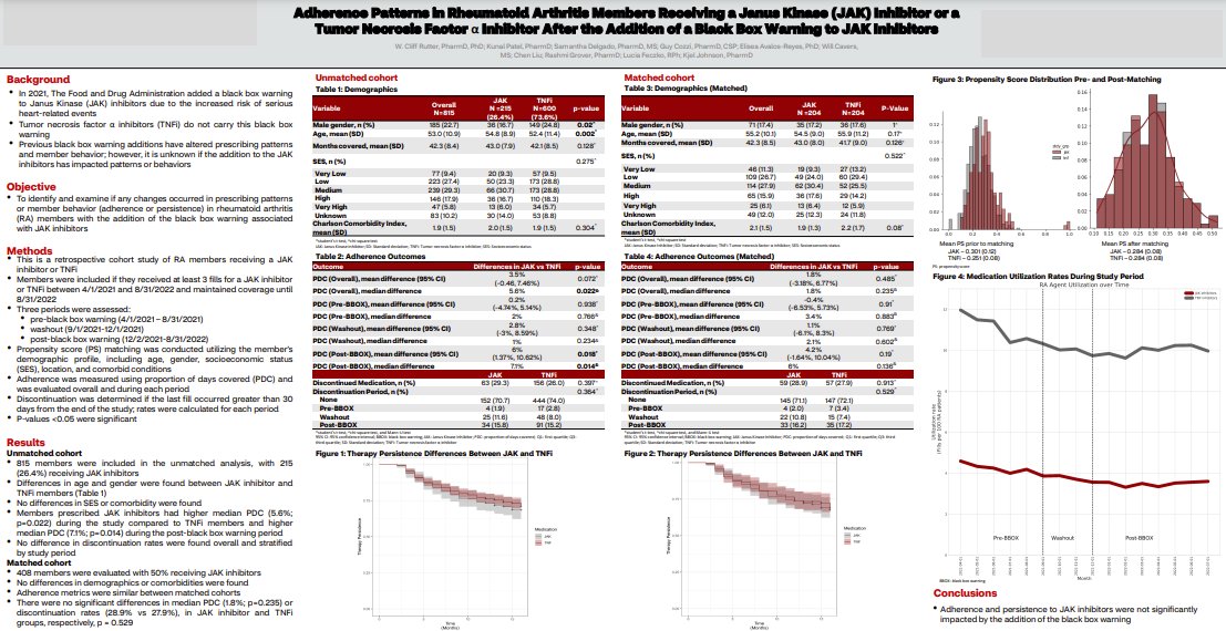 In PS-matched study, no significant difference in respiratory hospitalisation or death between RA-ILD patients on non-TNFi/JAKi vs. TNFi. This finding does not support systematic avoidance of TNFi in RA-ILD, England B Abst#1582 #ACR23 #ACRBest @RheumNow https://t.co/1zVjMWNZZS https://t.co/d8TRIvGaIe