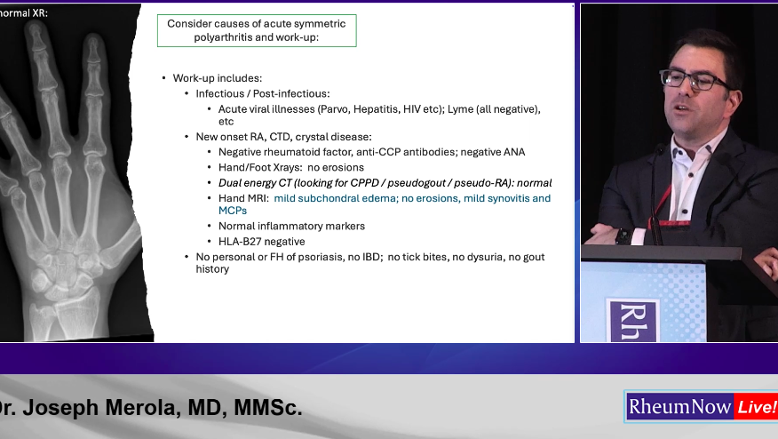 At RheumNow Live, Dr. Joseph Merola from UT Southwestern presented a compelling discussion on paradoxical immune reactions in psoriatic disease. He began with a case of a 60-year-old woman with mild psoriasis who, after 17 months on a TNF inhibitor, developed palmoplantar pustular disease with deep-seated pustules.