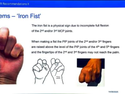 EULAR Classification criteria for hemachromatosis, presented by Prof. Kiely shows clinical pearls in diagnosis - Hook osteophytes @MCP 2/3, & Iron Fist sign w/ elevation of MCPs 2&3. #EULAR2025 https://t.co/S8iA0C4pwG