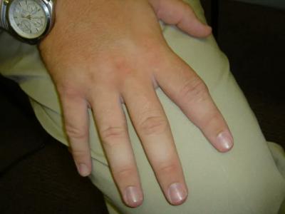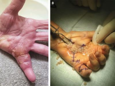 NEJM Clinical Images: 74-yoF with psoriatic arthritis has swelling of the fifth finger; found to have nontender, subcuta