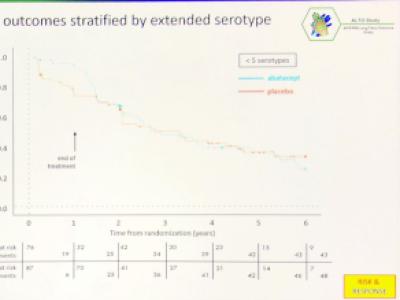 What happens in pre-RA when you stop #abatacept after 1 yr Rx At 6 yrs approx 60% on #Placebo V 50% who initially got