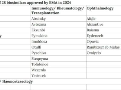 EMA approved a record 28 biosimilars in 2024 for cancer, osteoporosis, macular degeneration, and immune-related diseases