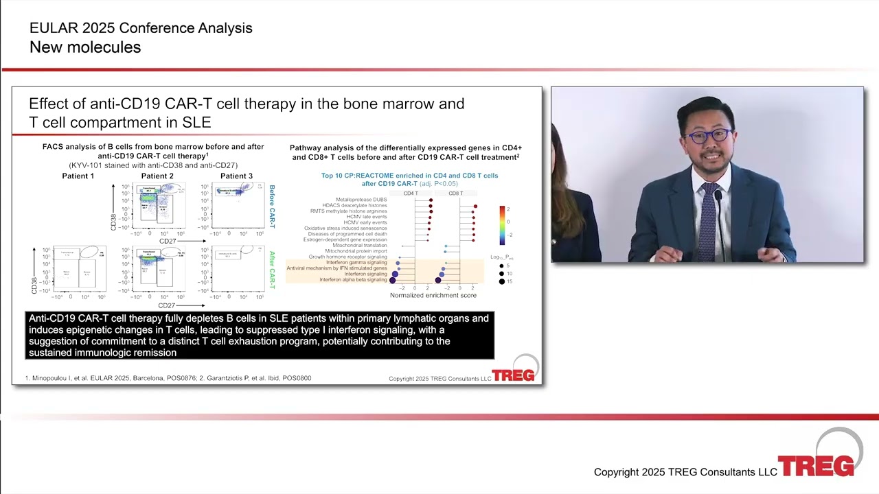 The session is moderated by Dr Fleischmann, with presentations and discussions by Drs Horowitz, Geraldino-Pardilla, Kim, Nash, Tanaka and Wells. Topics covered include: chimeric antigen receptor T cell (CAR-T) therapy; T-cell engager therapy; molecules in early development for RA, SLE and other AIRD"